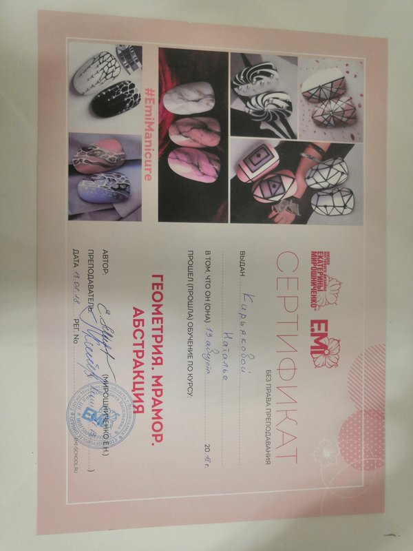 На базе нашего салона прошла обучение и повышение квалификации. Несмотря на небольшой опыт, очень аккуратно и трепетно относится к своей работе.